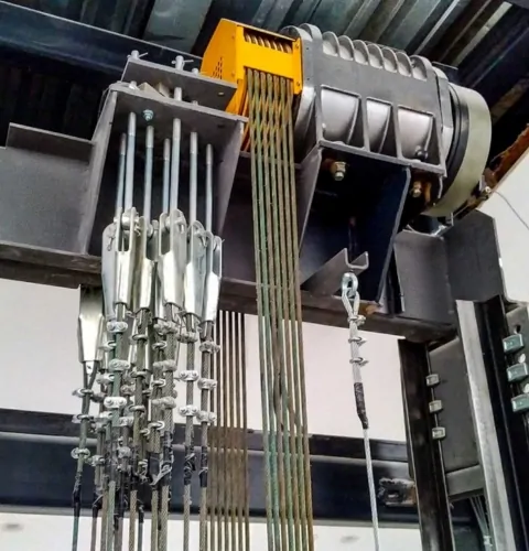 در این سیستم، موتور کششی و تجهیزات اصلی درون خود چاه آسانسور نصب میشوند.